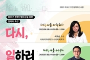 마포구(구청장 박강수)는 경력보유 여성들에게 사회 참여에 대한 지지와 재시작의 동기를 부여하기 위해 일자리 특강 '다시, 일하러 갑니다'를 6월 18일부터 7월 16일까지 한 달간 총 3회에 거쳐 개최한다. 강연은 마포중앙도서관 세미나실에서 열리며, 각 분야에서 활발히 활동 중인 명사들을 강사로 초청해 여성들의 삶과 일, 재도전의 의미를 함께 나눈다. 1회차(6월 18일) 강연에서는 '지선아 사랑해'로 많은 이들에게 감동을 전한 이지선 이화여자대학교 교수가 '다시, 나를 마주하다'를 주제로, 여성들이 자기 자신을 사랑하고 돌보며 내면의 힘을 되찾을 수 있도록 돕는다. 2회차(7월 2일) 강연에서는 김경일 아주대학교 교수가 '다시, 나를 세우다'를 주제로 경력보유 여성들이 현실의 어려움을 극복하고 삶의 주체로 설 수 있도록 용기의 메시지를 전한다. 3회차(7월 16일) 강연은 이호선 숭실사이버대학교 교수가 '다시, 시작이다'를 주제로 육아·가사 등으로 사회활동을 중단했던 여성들이 일과 가정의 균형을 모색하며 다시 사회에 나아갈 수 있도록 지지와 격려를 보낸다. 강연 이후에는 마포구고용복
